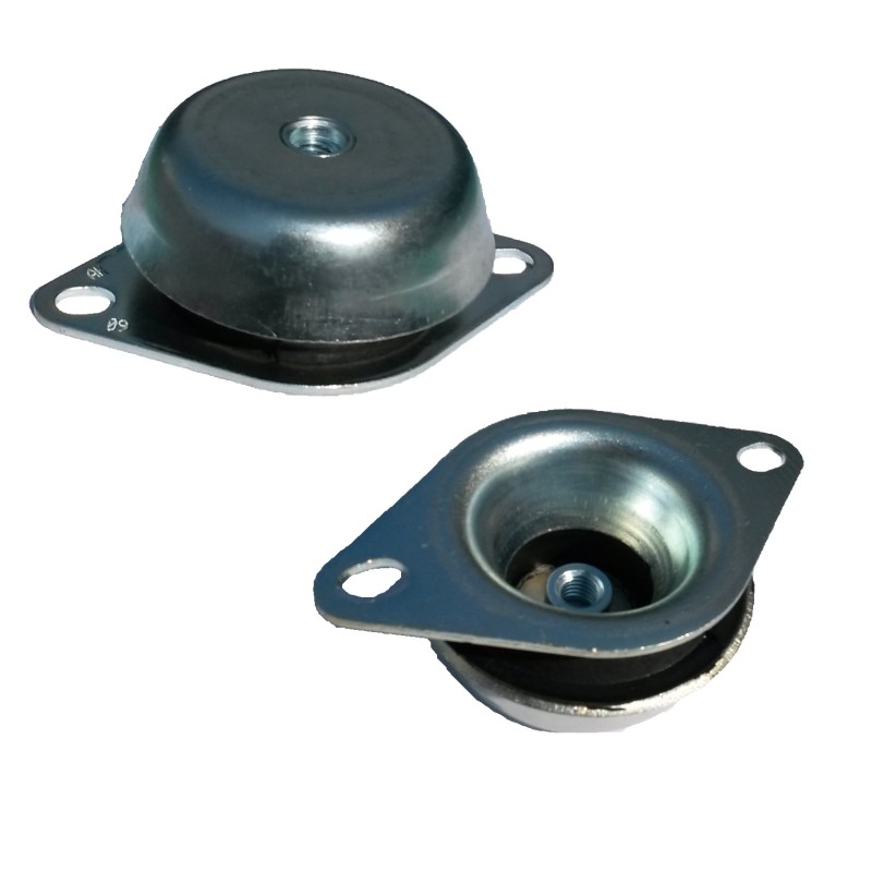 Made of rubber which has been vulcanized between two shaped and punched metal plates. Used for the insulation of electric motors, hydraulic pumps, etc..