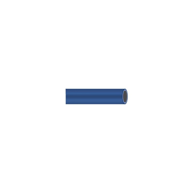 A braid reinforced hose made of TPU, transparent inner layer and blue outer layer with a polyester fiber reinforcement. Flexible, light, strong and chemically inert. Good resistance to chemical products. Used on pneumatic equipments, paint sprayers, sand guns, blowing and inflating guns. Temperature range: -20°C +60°C.