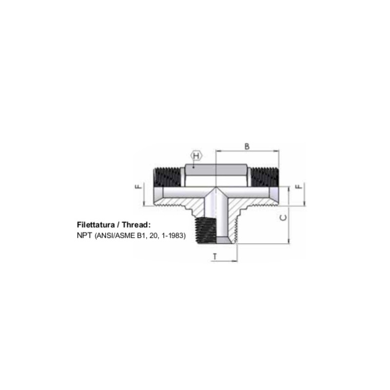 6. 7048 - T con maschio NPTF centrale