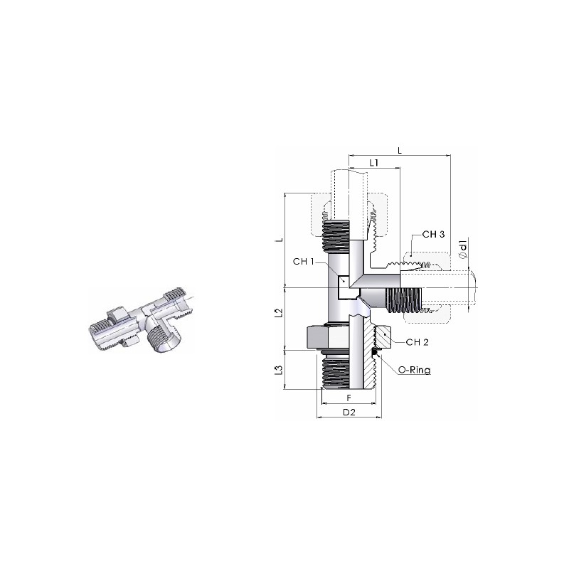 1076 UNF - Terminale a T con Maschio orientabile UNF laterale