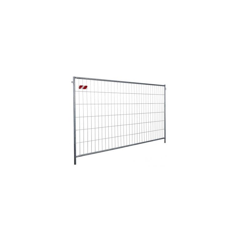 Galvanized temporary barrier. Technical features: iron tubular diam. 42, superior and inferior beam diam. 33, bar diam. 4, link 290x103, hot dip galvanized. Contoured version available.