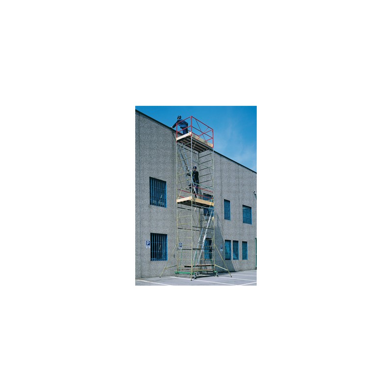 Professional stainless steel scaffolding FE360 electrolytically galvanized against rust. It offers great job security and ease of assembly without tools. The cross vault form a statically perfect structure that can not be twisted even at greater heights, also providing a large work space in front. Comply with European standards UNIEN1004, complete with all the required accessories, no obligation anchor. SPECIFICATIONS: Dimensions: 2,00 x 1,20 m. Max capacity: 200 kg/m² (including 2 people - floors and stairs excluded). Span: height 1,20 m - weight 25 kg. Uprights: round steel tube Ø 45 mm. STANDARD FEATURES (ITALIAN RULES): railing red cap from 1,20 m, painted with epoxy powder that incorporates two rails. Base Sectional consists of: 2 basic elements of green epoxy coated (with holes for drainage of rainwater), n.4 green rods of the base painted with epoxy powders, No. 4 rubber wheels diameter 200 mm, n.4 levelers for uneven pavements, 2 cruises base, n.4 wedges. User's manual and certificate of compliance with the regulations. Identification label. ACCESSORIES ON REQUEST: decking with aluminum or steel armor and wooden marine plywood with toe clips, windproof hook and trap, steel floor base to support the first internal ladder (European standard), internal m 2 aluminum ladder (European standards), internal 2.2 m aluminum ladder (European standards), internal aluminum ladder from 2.2 to 3.6 m (European standards), additional railings for walkways over the first n. 4 stabilizing brackets, n. 4 nylon wheels with polyurethane cover injected with anti-fingerprint, diameter 200 mm, with pedal brake (European standards), n.2 stiffening rods for landing at high altitude.