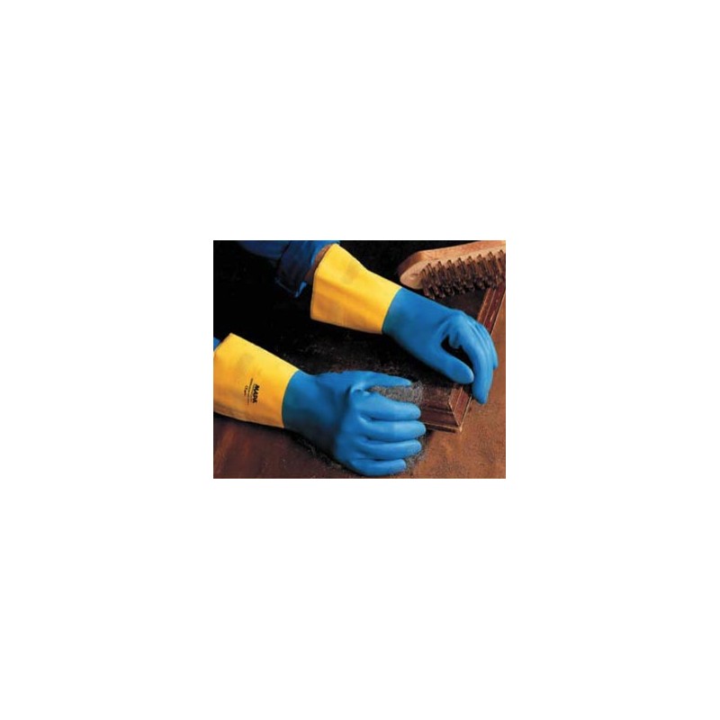 Blend of latex and neoprene, cotton lining. Application: industrial cleaning, surfaces treatment, pickling, maintenance, manufacture of building materials. PPE Cat. 3