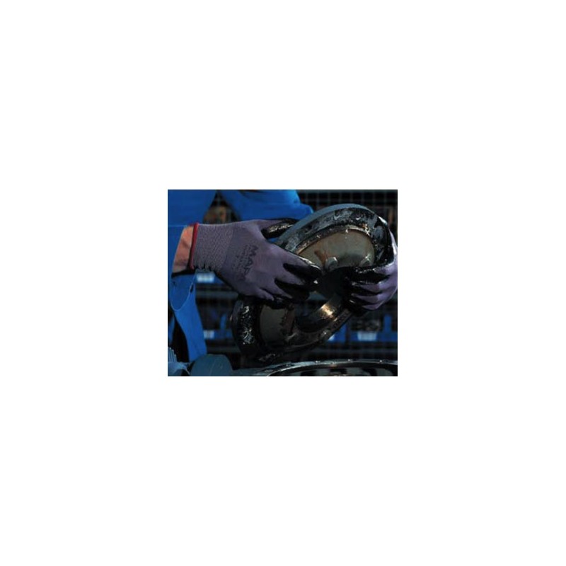 Nitrile coated polyamide supported glove, breathable open back and fingers. In addition to supplying optimum performances, they protect the hands from grease, they don't swell when in contact with oil and also offer excellent sensitivity in handling small pieces. Application: precision work in electronic and mechanic industries, logistics handlings. PPE Cat. 2