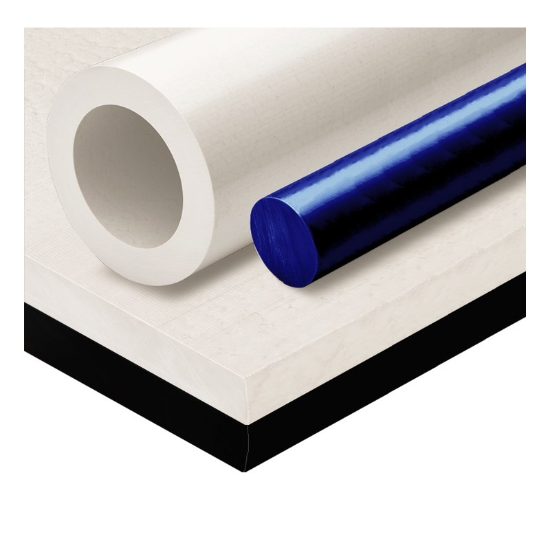 Acetalic resin is a plastic material with excellent mechanical and elevated dimensional stability characteristics. Its scarse hygroscopicity enables direct contact with foodstuff (only natural version). This material is normally used for the processing bushings, gears, slide guides and precisions bearings. Natural color or black.