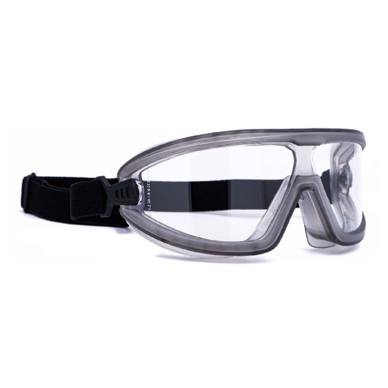Lightweight protective glasses,with adjustable fabric band. Anti-fog, antistatic polycarbonate lens.