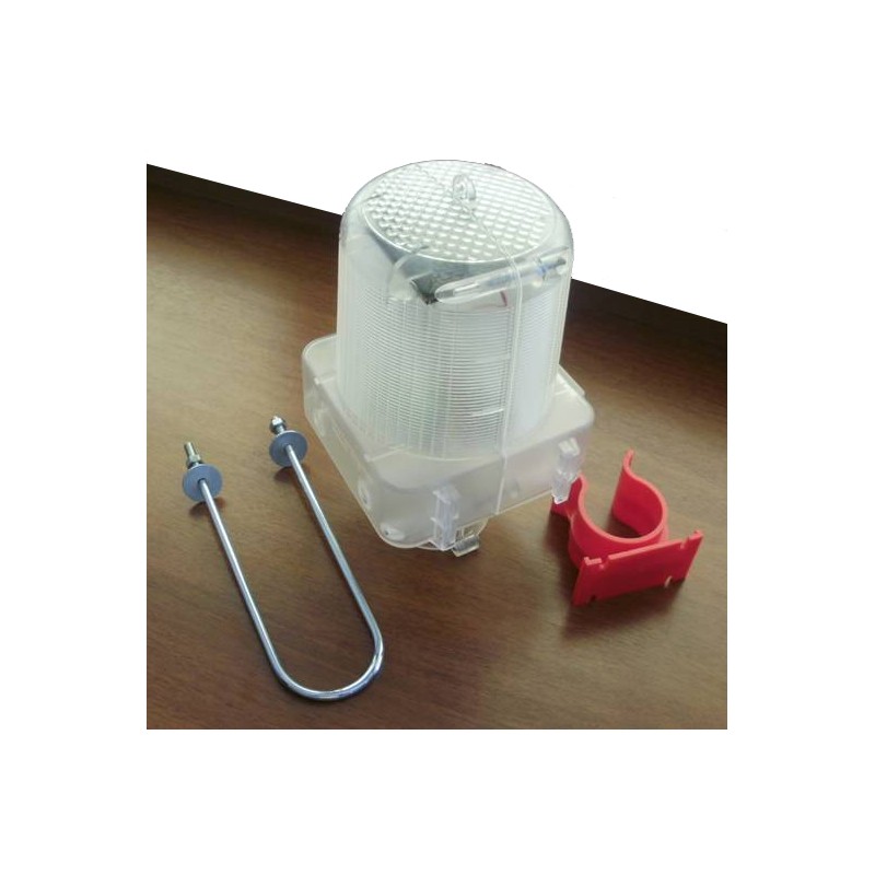 Solar-powered lamp. A charge of 6 hours allows the use of the lamp for 24 h in continuous use. Operation controlled by a microprocessor, with automatic start and stop, the lamp will turn on automatically when it gets dark and turn off at sunrise. Selectable type of light, stationary red or flashing yellow. Lights up to 360°. Water resistant and weatherproof.
