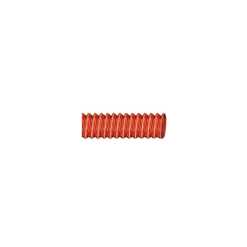Red color, flexible hose made of two layers of glass fiber impregnated with silicone compound incorporating a galvanized steel spiral and an external glass fiber string. For cold and hot air in hot environment suction and delivery. Can be axially compressed up to 30% of the length. Temperature range: -70°C +300°C (max. point). Other internal diameters of production: 19 - 22 - 26 - 28 - 30 - 32 - 35 - 39 - 41 - 42 - 44 - 45 - 52 - 55 - 57 - 58 - 60 - 62 - 64 - 65 - 67 - 70 - 72 - 80 - 83 - 92 - 95 - 108 - 110 - 120 - 130 - 140 - 160 - 165 - 170 - 178 - 180 - 229 - 305. Other sizes, end cuffs and insulated versions on request.