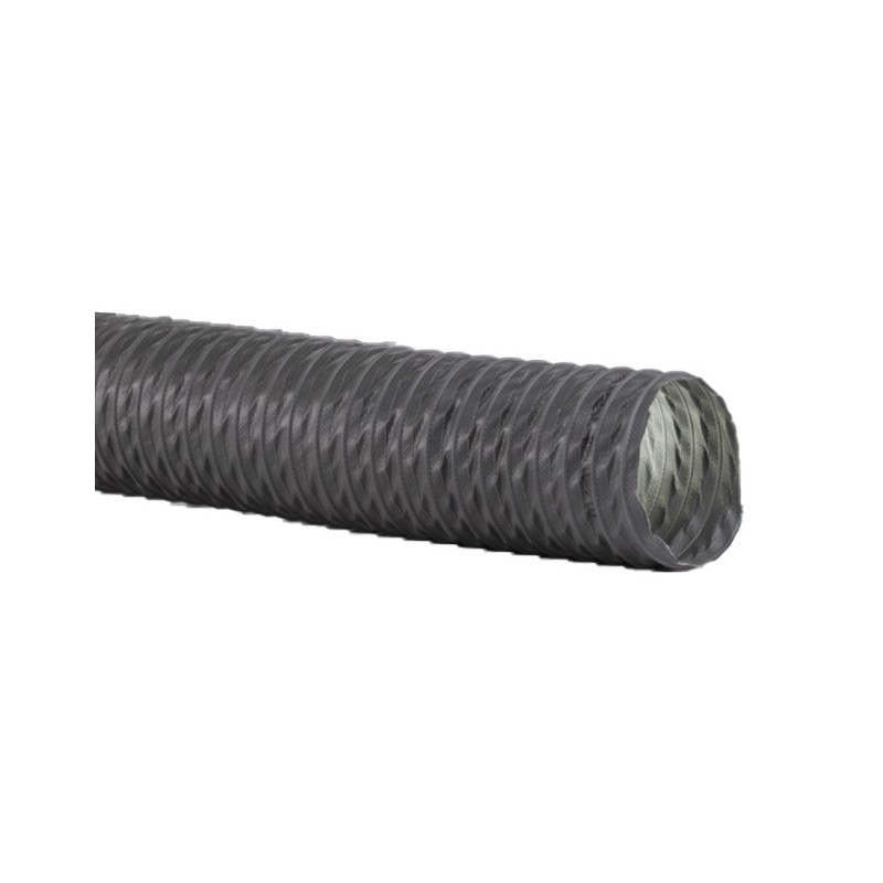 Black color, flexible hose made of polyester fabric, special PU for high temperatures coated, embedded steel wire helix. For cold and hot air and for combustion vapours. Fire resistance: Flame retardant class M1, UL94, class VTM-0. Temperature range: -50°C +200°C (peaks). Other internal diameters of production: 51 - 63 - 70 - 76 - 80 - 90 - 110 - 120 - 125 - 130 - 140 - 150 - 160 - 180 - 200 - 225 - 250 - 300. Other lengths and end cuffs version on request.