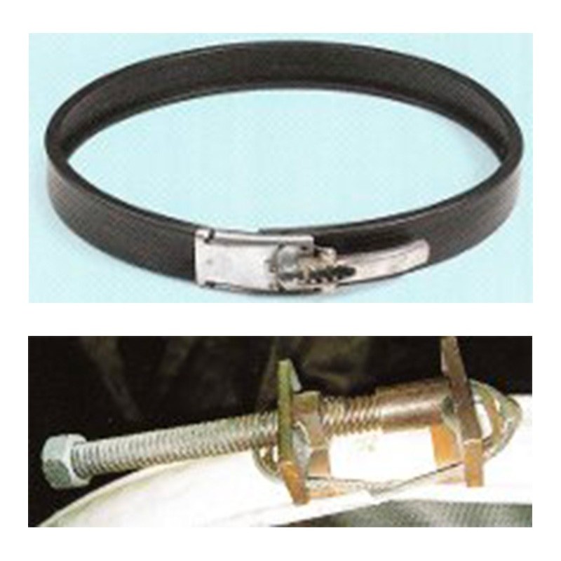 Realizzato in profilato di PVC, aperto, da sovrapporsi ai trefoli delle testate dei due spezzoni di Aerotubo® da giuntare; chiusura mediante tirante azionato da leva registrabile.  Adatto per Aerotubi per aspirazione ("Concertina").