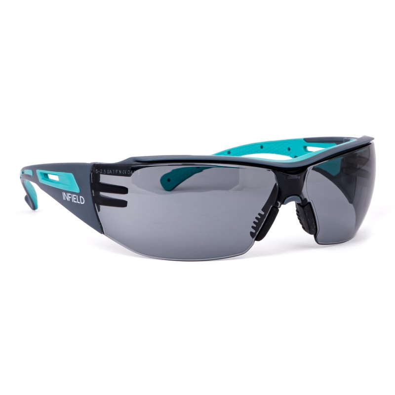 Occhiale dalla linea moderna e innovativa, estremamente leggero. Lente in policarbonato con trattamento anti-graffio e anti-appannamento.
