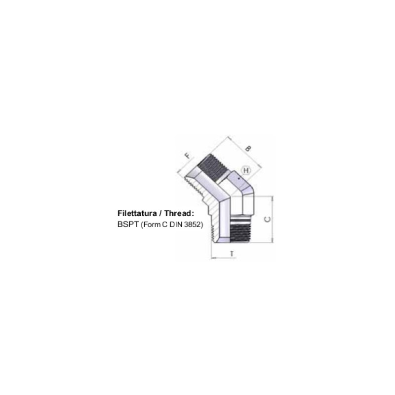 1034 - Curva 45° orientabile BSP/Metrico DIN 3852-1