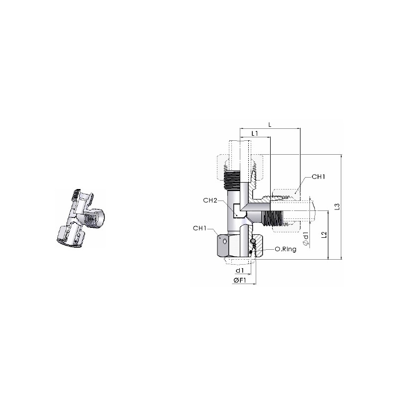 3073 - Raccordo Orientabile a gomito con O'Ring