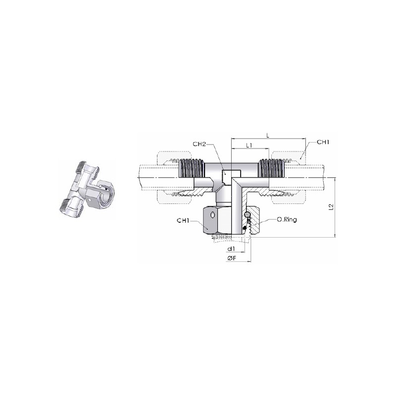 4073 - Raccordo Orientabile a TEE con O'Ring