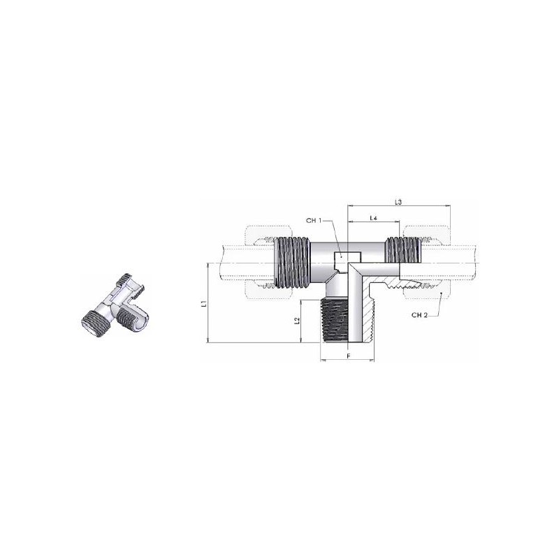 4073 - Raccordo Orientabile a TEE con O'Ring