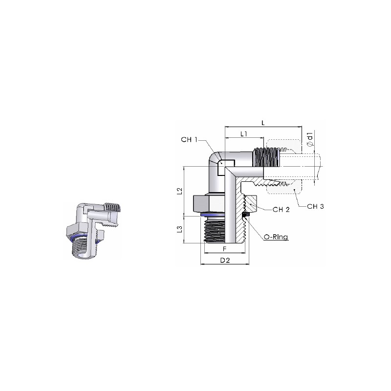 3073 - Raccordo Orientabile a gomito con O'Ring