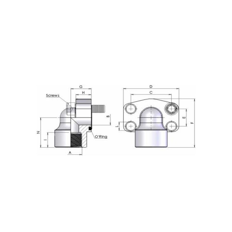 G3N0 - Flange a 90 a tenuta conica 60 filettate BSP
