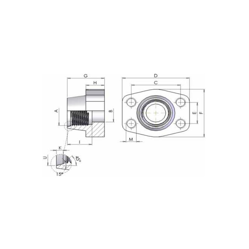 03CU - Controflange filettate (UN) con filetto cilindrico con sede ORING