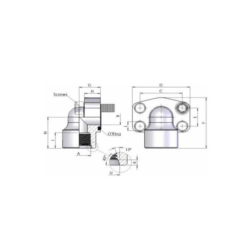 03NU - Flange a 90 filettate (UN) con filetto cilindrico con sede ORING