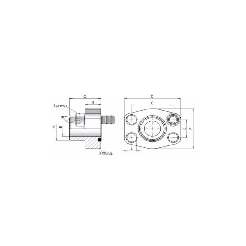 D3N0 - Flange 90 filettate Metriche con attacco DIN 2353