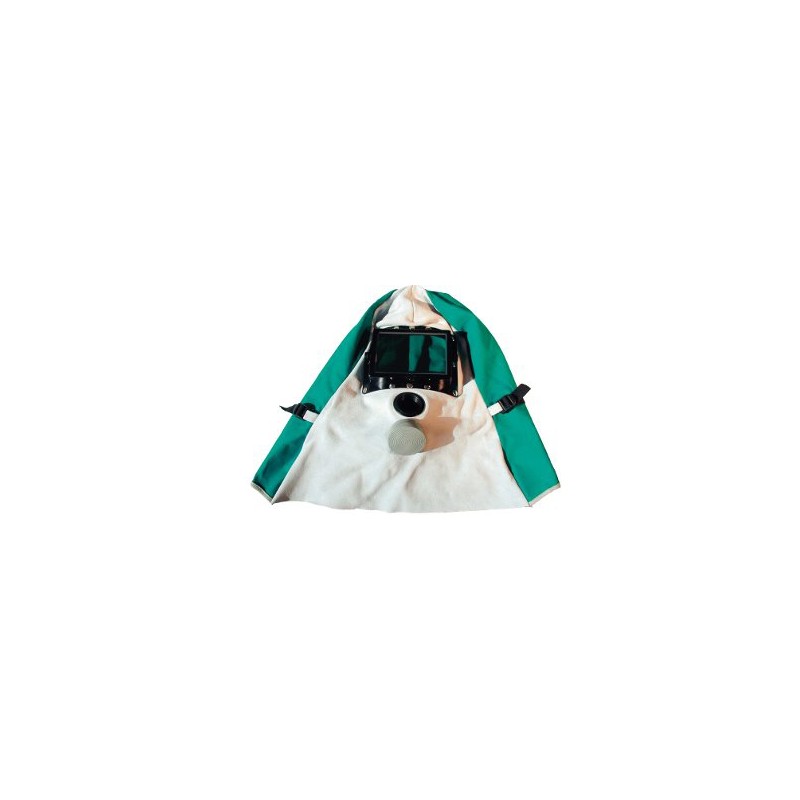 Light duty filter respirator to protect the face and the respiratory system from chips, fumes, dusts, abrasive particles etc. It is complete with: - Natural rubber half mask with screw in connector EN 148/1 (filter not included). - Natural rubber expiration valve acids and solvents resistant, in a plastic container, protected by a PVC cap. - Protection hood (leather front and waterproof fabric back) with frame holder (100x140mm) with polycarbonate safety shield and mobile counter frame with replaceable glass shield.For protection from dusts, fumes and mists the RC4 respirator must be used with P3 filter.
