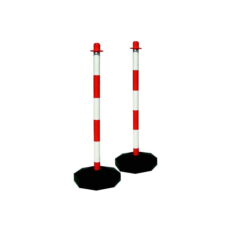 Colonna per delimitazioni in plastica completa di base antiurto, colore bianco/rosso, altezza 85 cm.