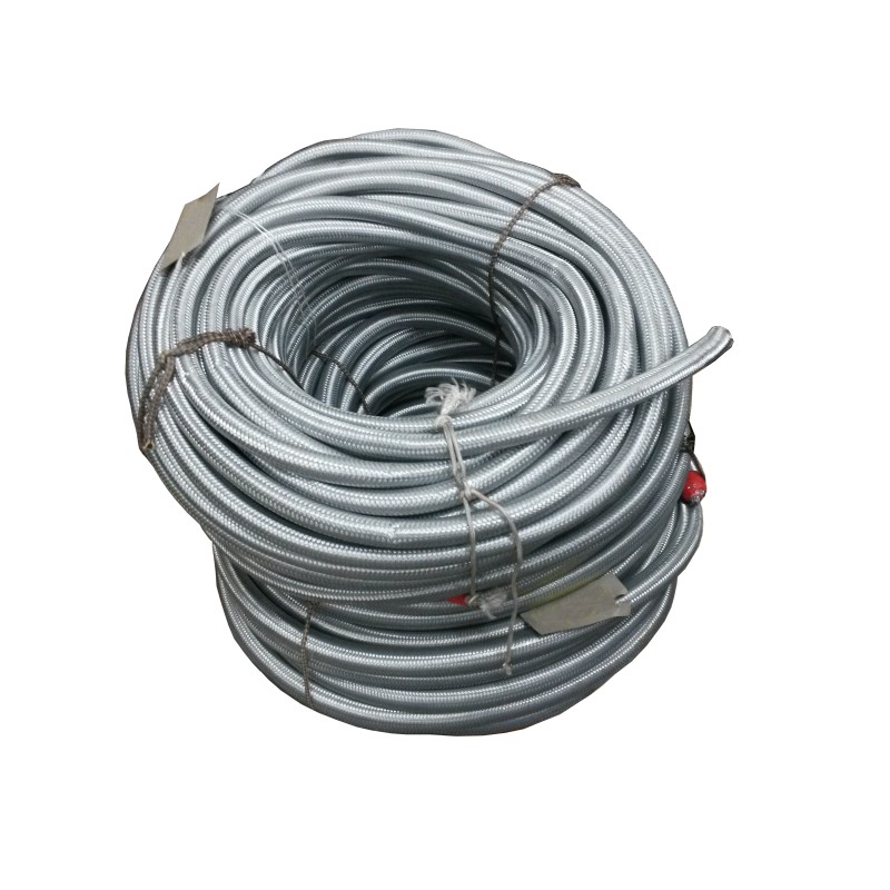 Tubo in elastomero per mandata di acqua industriale, aria e fluidi non corrosivi. Sottostrato nero liscio con ottime caratteristiche meccaniche e bassa permeabilità all'aria, rete di fili di poliestere ad alta tenacità, copertura in elastomero resistente all'abrasione ed all'invecchiamento. Rivestito con calza di acciaio zincato. Temperatura di esercizio: -20°C +60°C. Altri diametri, lunghezze e pressioni disponibili su richiesta.
