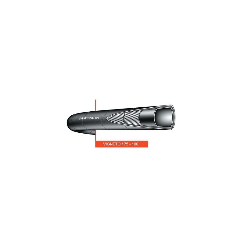 Tubo per mandata di acqua industriale, anticrittogamici, diserbanti ecc. Sottostrato nero liscio in gomma sintetica, inserzioni tessili ad alta tenacità, copertura in gomma sintetica resistente alle intemperie, all'ozono ed all'abrasione. Superficie esterna nera liscia ad impressione di tela. Temperatura di esercizio: -25°C +70°C. Altre dimensioni lunghezze e colori sono realizzabili su richiesta.