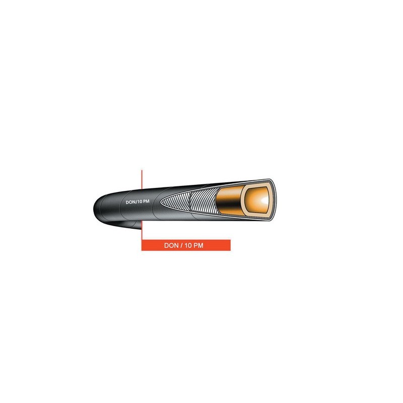 Tubo per mandata di materiali inerti abrasivi, sabbia, ghiaia, cemento ecc. Sottostrato liscio in gomma naturale nocciola ad elevata resistenza all'abrasione, inserzioni tessili ad alta tenacità, cavetto di rame, copertura in gomma sintetica resistente alle intemperie, all'ozono ed all'abrasione. Superficie esterna nera liscia ad impressione di tela. Temperatura di esercizio: -25°C +70°C. Realizzabili altre dimensioni e colori.