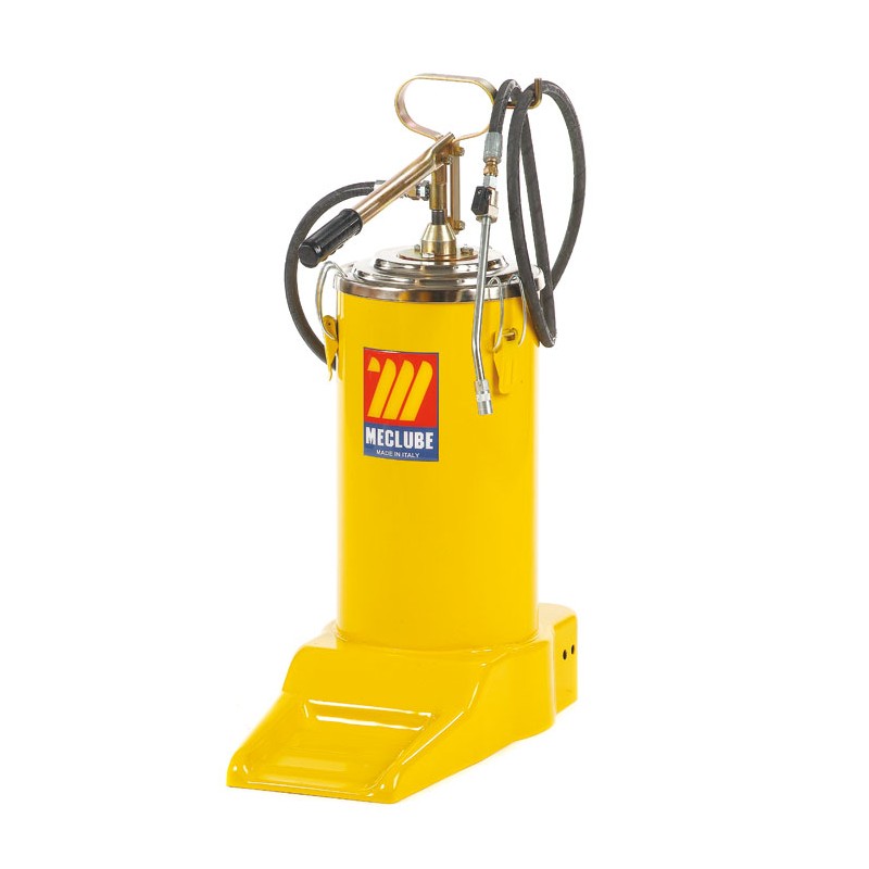 Ingrassatore manuale da 16 kg. Con serbatoio portatile, membrana premigrasso con molla, tubo di erogazione da 2 mt, rubinetto M-F 10 x 1 mm, tubetto rigido 200 mm con testina 4 gr.